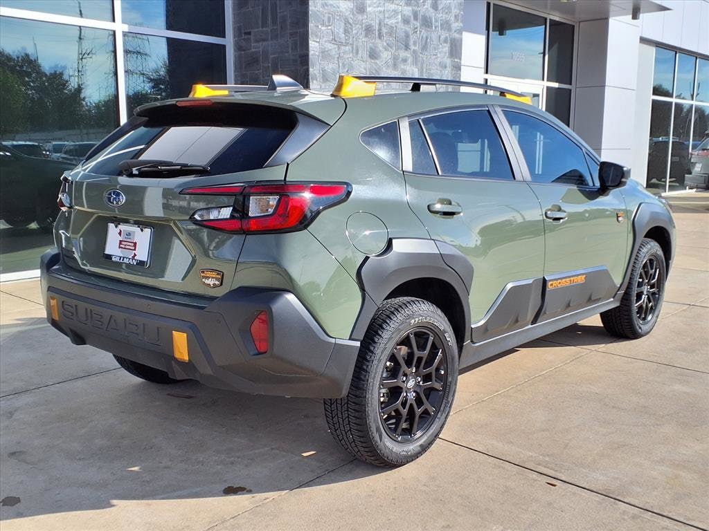 Discover adventure in this rugged Green 2024 Subaru Crosstrek AWD Wilderness. Built for exploration, the Crosstrek Wilderness features Subaru's legendary full-time AWD, a powerful 2.5L 182hp engine, and 8-speed shiftable CVT for confident handling on and off-road. Tackle any terrain with Hill Descent Control, black fender flares, and roof rails, while LED headlights and fog lights illuminate your way. Inside, enjoy premium comfort with heated seats, leather-wrapped steering wheel, and automatic climate control. Stay seamlessly connected with an 11.6-inch STARLINK infotainment system, wireless Apple CarPlay/Android Auto, and hotspot-compatible Wi-Fi. Safety comes standard with adaptive cruise control, lane keeping assist, front/rear automatic emergency braking, blind spot detection, and rear cross-traffic alert. Extra touches include a wireless charging pad, multiple USB-C outlets, and a rearview camera. Ready for your next journey-test drive today!