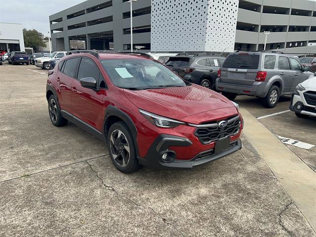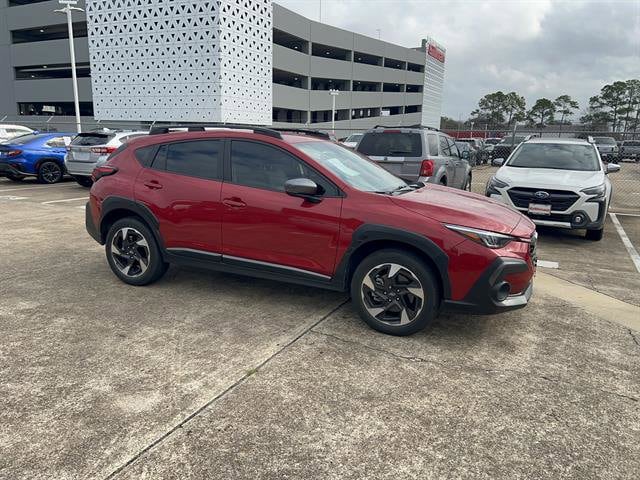 Experience adventure and comfort in this stunning Red 2025 Subaru Crosstrek Limited AWD. Powered by a 2.5L H4 engine paired with an 8-Speed Shiftable CVT, this crossover delivers the capability and efficiency you expect from Subaru. Enjoy premium features like leather-trimmed upholstery, heated front seats, power-adjustable driver's seat with lumbar support, and advanced safety technology including adaptive cruise control, front and rear automatic emergency braking, blind spot monitoring, and lane centering assist. Stay connected on the go with an 11.6-inch STARLINK infotainment system, wireless Apple CarPlay and Android Auto, and a front wireless charging station. Convenience is enhanced by keyless entry, push-button start, auto-dimming mirrors with HomeLink, black roof rails, and all-weather floor liners. The Crosstrek's rugged AWD system, hill descent control, and high ground clearance make it perfect for both city streets and weekend getaways. Don't miss out on this exceptionally equipped, nearly-new 2025 Crosstrek Limited-schedule your test drive today!