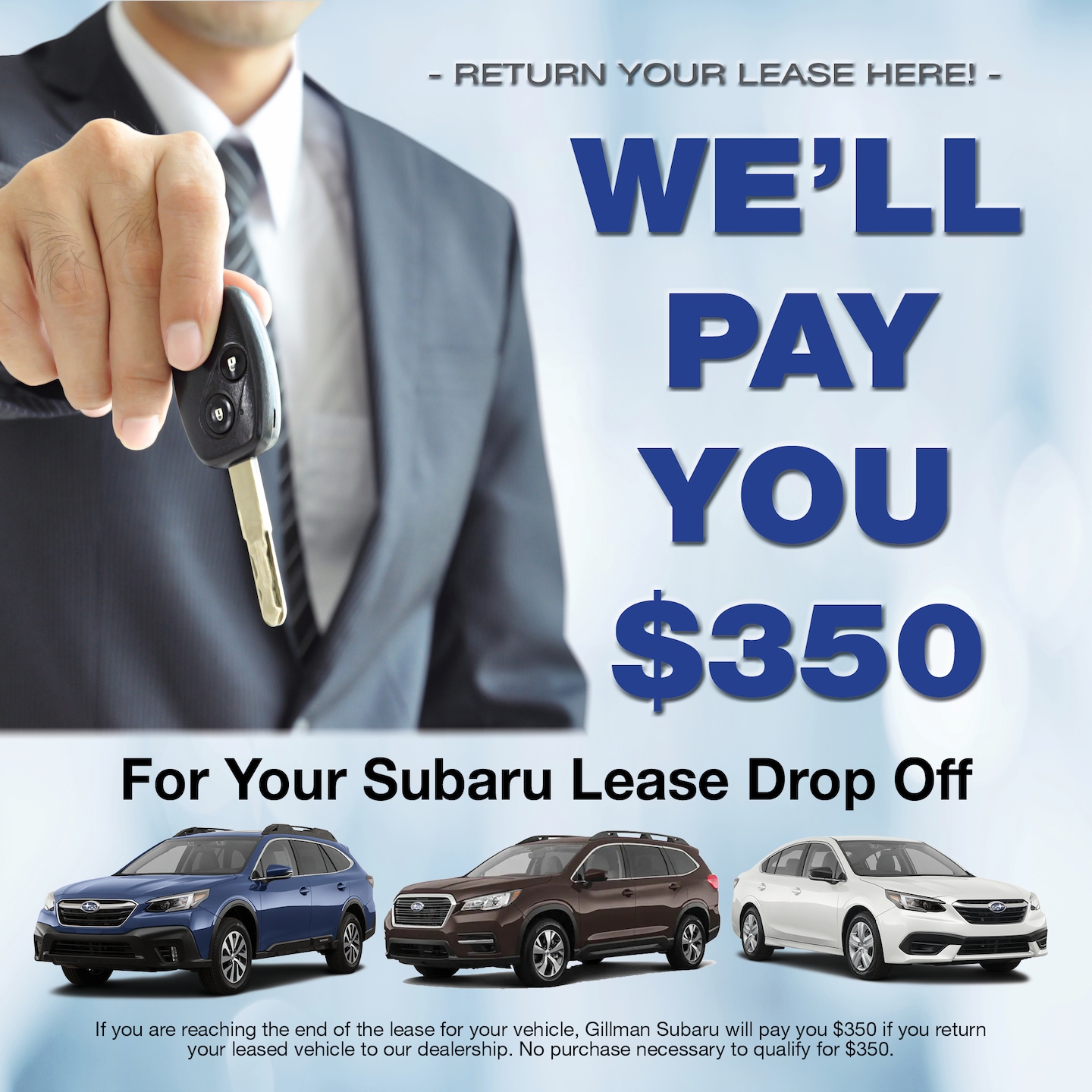 If you are reaching the end of the lease for your Subaru vehicle, bring your leased vehicle to Gillman Subaru Southwest and we'll pay you $350 if you return your leased vehicle to our Houston car dealership.