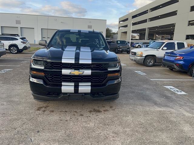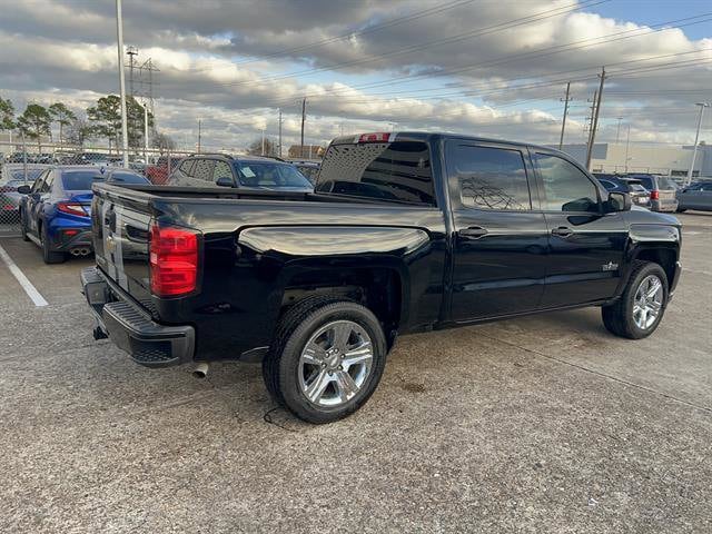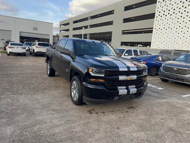 Tough, reliable, and ready to work or play-check out this Black 2018 Chevrolet Silverado 1500 Custom Crew Cab 4x4 with a 5.8 ft. short bed. Equipped with the powerful EcoTec3 5.3L V8 engine and a 6-speed shiftable automatic transmission, this Texas Edition Silverado is built for serious performance. Enjoy advanced features like OnStar with Wi-Fi Hotspot, MyLink infotainment with a 7-inch touchscreen, Bluetooth wireless connectivity, and SiriusXM Satellite Radio. Stay safe and confident with a rearview camera system, trailering equipment, heavy-duty locking rear differential, and LED cargo area lighting. Inside, you'll find cloth upholstery, color-keyed carpeting, a spacious crew cab, and convenient storage options. Other highlights include HID/Xenon headlights, chrome clad wheels, spray-on bed liner, and rear integrated corner step bumper for easy bed access. Ready to haul, tow, and handle any job-schedule your test drive today and see why the Silverado sets the standard for full-size trucks.