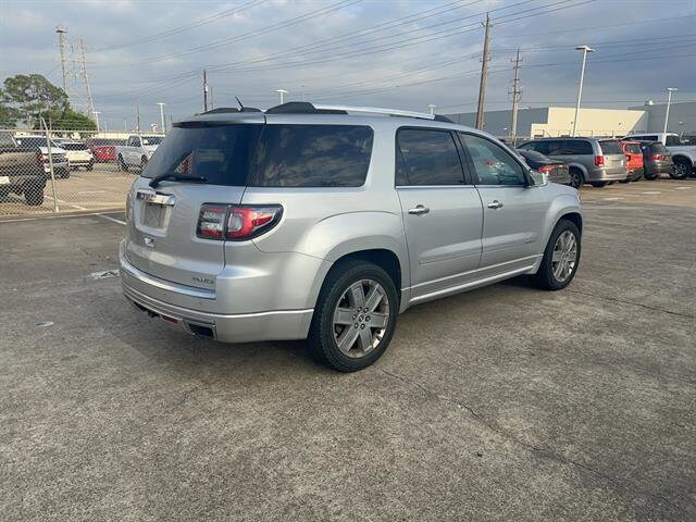 Experience luxury, capability, and advanced features in this Silver 2016 GMC Acadia AWD Denali. With its powerful 3.6L V6 engine, full-time AWD, and 6-speed shiftable automatic transmission, this SUV is ready for any road. The Denali trim offers premium comfort with heated and cooled leather-trimmed seats, heated steering wheel, and a panoramic dual moonroof. Stay connected and entertained with IntelliLink infotainment, Bluetooth, SiriusXM, built-in navigation, Bose premium audio, and integrated internet radio apps like Pandora and Stitcher. Safety is top priority with blind spot monitoring, rear cross traffic alert, lane deviation sensors, rearview camera, and parking sensors. Enjoy versatile space with power liftgate, flat-folding third-row seats, and all-weather floor mats. Chrome accents, 20-inch aluminum wheels, and aluminum roof rails complete the upscale look. Take command with remote engine start, power tilt/telescopic steering, and driver memory settings. This Acadia Denali blends style, utility, and technology for you and your family-schedule your test drive today!