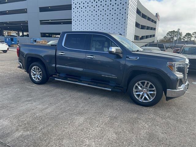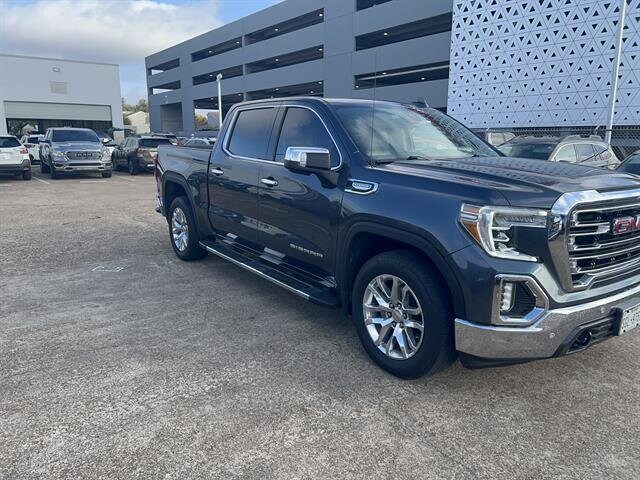 Experience power, comfort, and technology in this dark blue 2021 GMC Sierra 1500 SLT Crew Cab! Equipped with the robust EcoTec3 5.3L V8 engine and 8-speed automatic transmission, this 4x2 truck delivers a smooth yet capable ride. Stand out with 20-inch polished aluminum wheels, chrome accents, LED headlights, and a spray-on bed liner. The SLT Convenience Package offers heated and ventilated leather-trimmed front seats, heated steering wheel, and dual-zone automatic climate control for year-round comfort. Stay connected with the 8-inch GMC Infotainment System featuring wireless Apple CarPlay, Android Auto, and built-in Wi-Fi hotspot. Enjoy advanced safety with Driver Alert Package II, rearview camera, front/rear park assist, and trailer brake controller. The multi-function split-folding tailgate and power locking/open tailgate make loading and unloading effortless. Additional highlights include remote engine start, power-folding mirrors, memory driver's seat, and a premium sound system with HD Radio and SiriusXM. This Sierra 1500 SLT combines rugged capability with luxury and cutting-edge tech-perfect for work or play. Schedule your test drive today!
