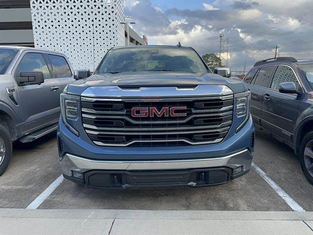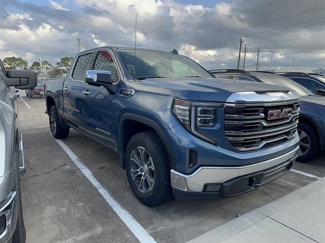 Experience power and sophistication with the 2024 GMC Sierra 1500 SLT Crew Cab in striking blue. This 4x2 truck is equipped with an EcoTec3 5.3L V8 engine paired to a 10-speed automatic transmission, delivering impressive performance whether you're on the road or at the job site. Enjoy advanced technology like a 13.4-inch GMC Infotainment System with Google Built-In, wireless Apple CarPlay and Android Auto, Amazon Alexa compatibility, and an available Wi-Fi hotspot. Stay safe with features such as Front Automatic Emergency Braking, Lane Keeping Assist, Pedestrian Detection, and a Rearview Camera. Comfort is key with leather-trimmed upholstery, heated and ventilated front seats, dual-zone automatic climate control, and a heated steering wheel. Convenience features include a Multi-function Split-folding Tailgate, power driver and passenger seats with memory, remote engine start, and plenty of USB power outlets. With its bold chrome accents, LED headlights, and practical bed features, this Sierra is ready for work or play. Discover luxury, innovation, and rugged capability in one incredible truck.