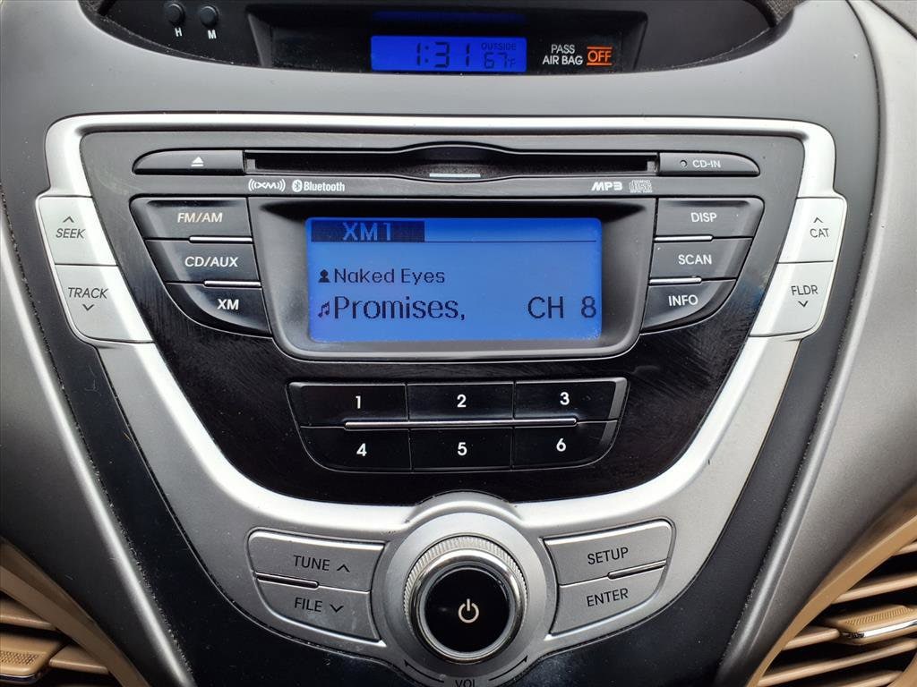 Drive in style with this blue 2012 Hyundai Elantra GLS 4dr Sedan. Enjoy reliable performance with its fuel-efficient 1.8L I4 engine and smooth 6-speed shiftable automatic transmission. Comfort features include height-adjustable front seats, premium cloth upholstery, and a tilt steering wheel. Stay connected with SiriusXM Satellite Radio, USB and iPod/iPhone audio inputs, and a 6-speaker sound system. Safety comes first with 4-wheel ABS, traction and stability control, front and rear side curtain airbags, LATCH child seat anchors, and crumple zones. Convenience features like keyless entry, power windows, power door locks, heated side mirrors, and a spacious 60/40 split rear seat make every drive enjoyable. With its eye-catching blue exterior, chrome grille, and full wheel covers, this Elantra is the complete package for those seeking comfort, style, and peace of mind. Schedule your test drive today!