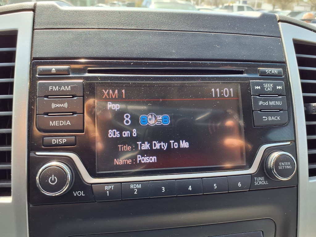 Check out this reliable 2018 Nissan Frontier SV Crew Cab in classic white, perfect for work or play. Enjoy the power of a 4.0L V6 engine paired with a smooth 5-speed automatic transmission and rear-wheel drive. This Frontier offers comfort and convenience with features like a 5-inch infotainment screen, Bluetooth wireless connectivity, SiriusXM satellite radio, a rearview camera, and steering wheel-mounted controls for audio, phone, and cruise control. Aluminum alloy wheels, a chrome rear bumper, and a bold black grille add style, while the full-size spare tire, removable tailgate, and tie-down anchors make it ready for any job. Safety features include front and rear crumple zones, front and rear side curtain airbags, LATCH child seat anchors, and a tire pressure monitoring system. The spacious Crew Cab configuration provides plenty of room for family or crew, and rear seatbacks that fold up for extra storage. Don't miss out on this versatile and well-equipped truck that's ready for your next adventure.