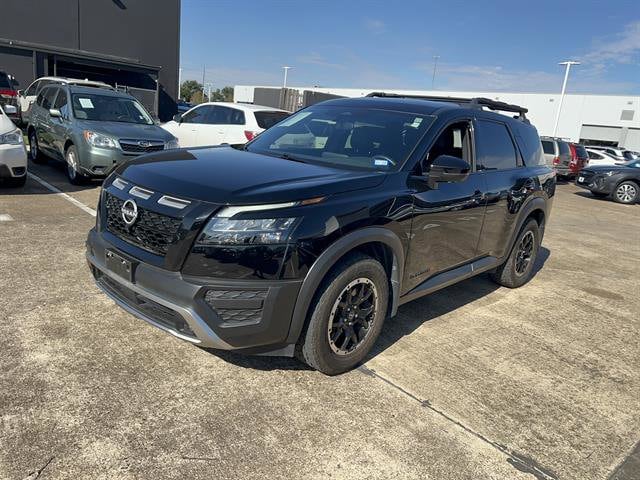 Experience adventure in style with this Black 2023 Nissan Pathfinder Rock Creek AWD SUV. Designed for both rugged trails and daily commutes, it features a powerful 3.5L V6 engine and 9-speed shiftable automatic transmission with On-Demand AWD. Enjoy comfort and convenience with heated front seats, leatherette upholstery, tri-zone automatic climate control, and a 7-inch instrument cluster paired with an 8-inch infotainment screen with Apple CarPlay and Android Auto. Stay safe with advanced systems like Front/Rear Automatic Emergency Braking, Lane Keeping Assist, Blind Spot Monitoring, Rear Cross Traffic Alert, and a Surround View Camera System. The off-road-tuned suspension, Class III trailer hitch, and black roof rails make it ready for outdoor adventures, while adaptive cruise control and NissanConnect smart device integration keep you connected and at ease on every drive. Don't miss your chance to own this versatile, family-ready SUV-schedule your test drive today!