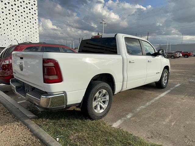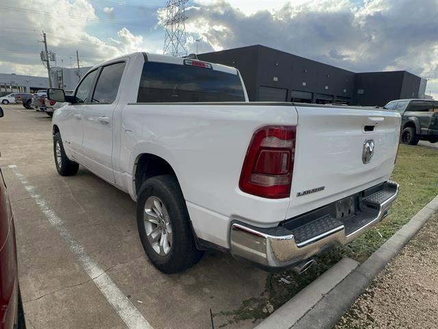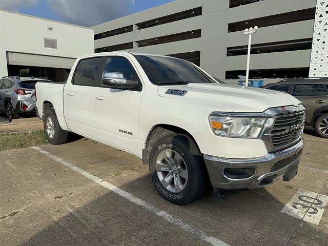 Drive in style and power with this 2024 Ram 1500 Laramie Crew Cab in stunning white. Featuring the mighty HEMI eTorque 5.7L V8 engine paired with an 8-speed automatic transmission, this 4x2 pickup delivers both muscle and efficiency thanks to its mild hybrid system. Enjoy luxurious comfort with leather-trimmed bucket seats, heated and ventilated front seats, a heated steering wheel, and dual-zone automatic climate control. The advanced Uconnect infotainment system boasts an 8.4-inch touchscreen with wireless Apple CarPlay and Android Auto, Wi-Fi hotspot, and SiriusXM compatibility. Safety is top-notch with front automatic emergency braking, a rearview camera, and multiple pre-collision warning systems. Convenience features include remote engine start, power folding side mirrors, power locking tailgate, and a customizable 7-inch instrument cluster. Chrome accents, aluminum alloy wheels, and LED lighting give this Ram a premium look, while the Crew Cab design ensures plenty of space for passengers and cargo. Ready to work or play, this Ram 1500 Laramie brings together capability, technology, and comfort in one impressive package.