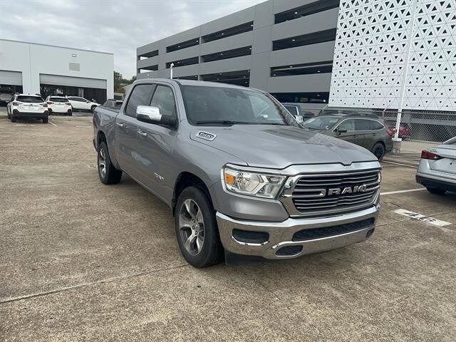 Discover the refined power and comfort of the 2024 Ram 1500 Laramie Crew Cab in striking silver, with just 6,063 miles! This 4x2 pickup is powered by a robust HEMI eTorque 5.7L V8 (395hp, 410lb-ft) paired with an 8-speed automatic, offering capability and efficiency. Enjoy luxury with leather-trimmed bucket seats, heated and ventilated front seats, and a heated steering wheel. Stay connected via Uconnect with an 8.4-inch touchscreen, wireless Apple CarPlay and Android Auto, and a premium sound system. Advanced safety features include front automatic emergency braking, lane keep assist, rearview camera, and multiple pre-collision warnings. Convenience abounds with remote engine start, power-folding side mirrors, power-locking tailgate, and proximity entry. Chrome accents, aluminum alloy wheels, and LED lighting add sophistication. Whether at work or play, this Ram 1500 Laramie delivers versatility, style, and the latest tech. Ready for your test drive today!