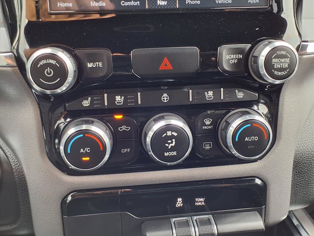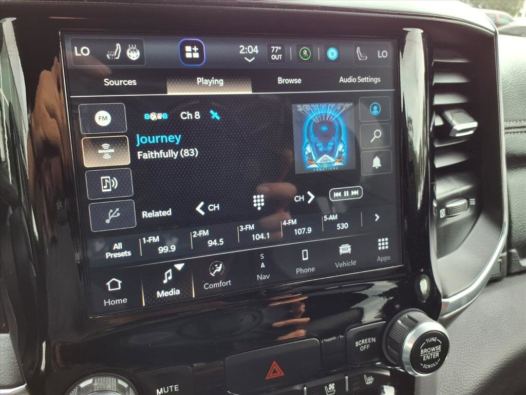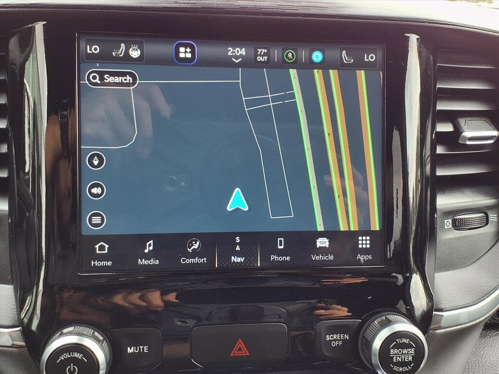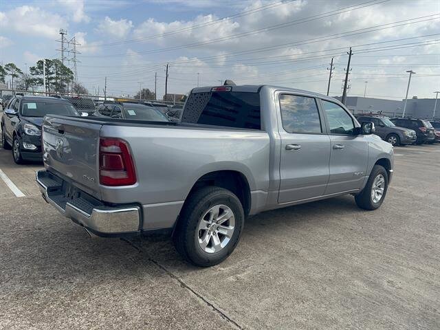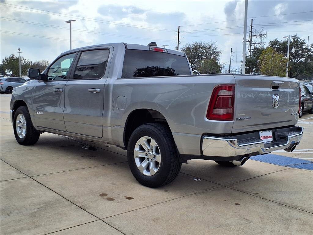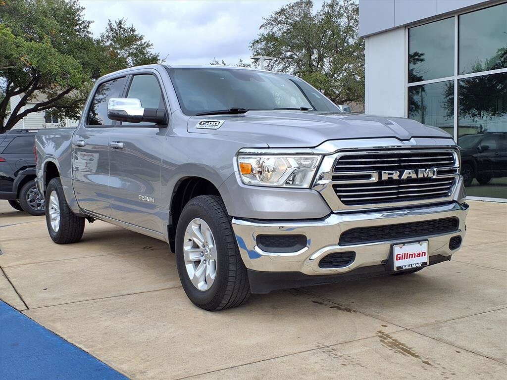 Experience power and luxury with this Silver 2024 Ram 1500 Laramie Crew Cab 4x4! Under the hood, you'll find the robust HEMI eTorque 5.7L V8 engine paired with an 8-speed automatic transmission for a smooth yet commanding drive. The Laramie trim spoils you with leather-trimmed bucket seats, heated and ventilated front seats, and a heated steering wheel for year-round comfort. Stay connected with Uconnect infotainment on an 8.4-inch touchscreen, featuring wireless Apple CarPlay and Android Auto, plus SiriusXM satellite radio and Wi-Fi hotspot capability. Advanced safety features include front automatic emergency braking, a rearview camera, and multiple pre-collision alerts. Convenience abounds with remote engine start, power-folding heated mirrors, power locking tailgate, and a customizable digital instrument cluster. This truck is ready for work or play, equipped with a Class III trailer hitch, 7-pin wiring, and under-rear seat storage. Premium aluminum alloy wheels and chrome accents complete its bold look. Don't miss your chance to own this versatile, feature-packed Ram 1500 Laramie-schedule your test drive today!