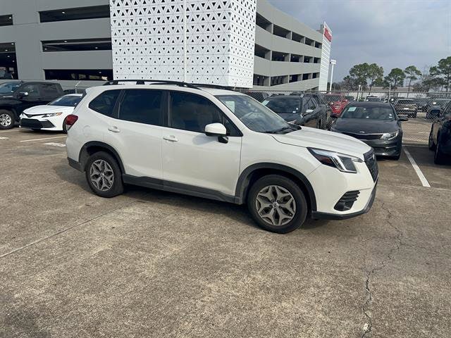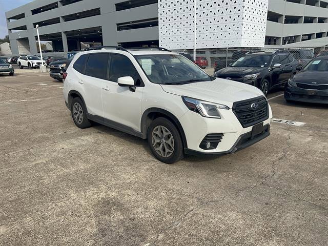 Experience the versatility and reliability of this White 2022 Subaru Forester AWD Premium 4dr Crossover. Equipped with Subaru's renowned Symmetrical All-Wheel Drive and a fuel-efficient 2.5L H4 engine, this Forester is ready for all weather and road conditions. Enjoy top safety features including Front Automatic Emergency Braking, Pedestrian Detection, Lane Centering, Adaptive Cruise Control, and Blind Spot Detection with Rear Cross Traffic Alert. Stay connected with Apple CarPlay, Android Auto, Bluetooth, and STARLINK infotainment on a crisp 6.5-inch touchscreen. Comfort comes standard with heated front seats, a power panoramic moonroof, power rear gate, and dual-zone automatic climate control. Additional highlights include a rearview camera with washer, power driver's seat with lumbar support, reclining rear seats, and ample cargo space with split folding rear seats and a retractable cargo cover. This Forester blends advanced tech, safety, and everyday practicality for your next adventure. Schedule your test drive today!