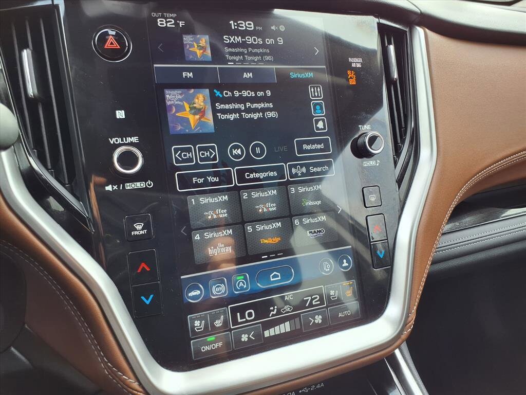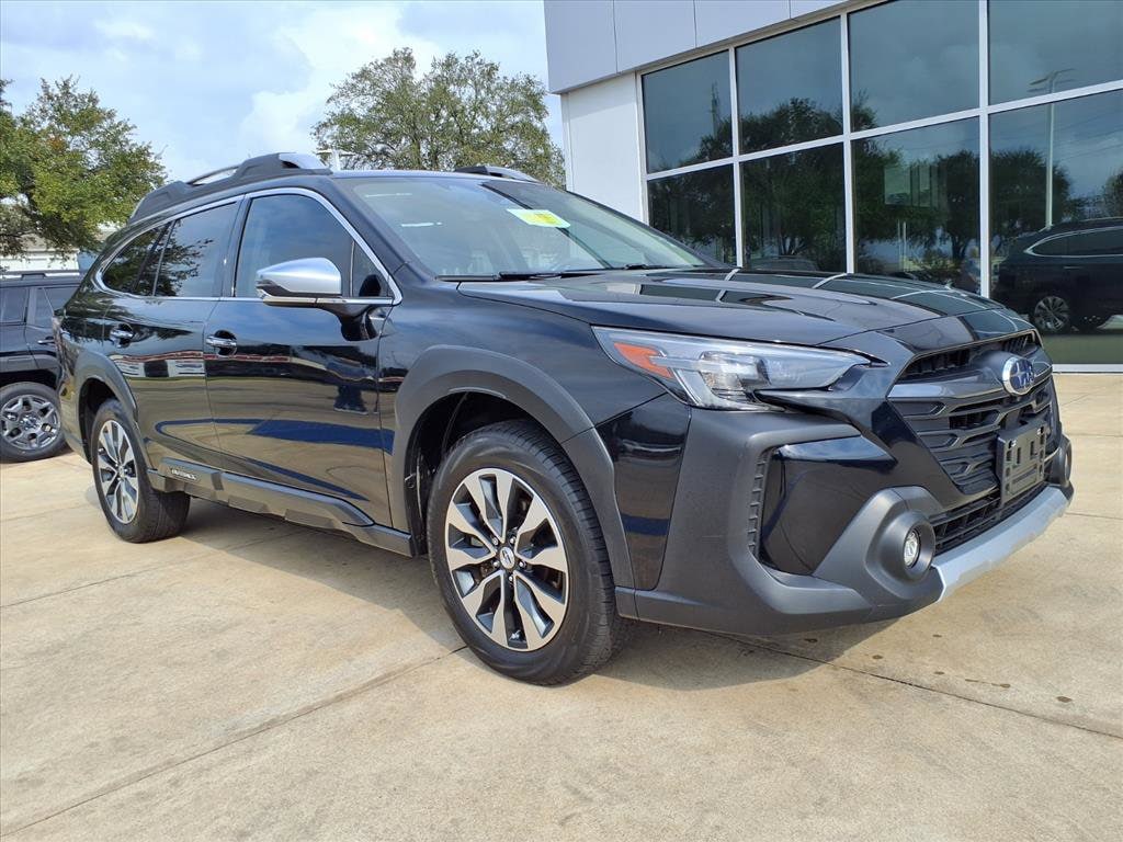 Experience adventure and luxury in this Black 2023 Subaru Outback AWD Touring XT! With robust 2.4L Turbo engine and symmetrical all-wheel drive, you get performance and confidence on any road. Enjoy the comfort of leather-trimmed upholstery, heated and ventilated front seats, a heated steering wheel, and driver seat memory. Stay connected with the 11.6-inch STARLINK touchscreen, Harman Kardon premium audio, wireless Apple CarPlay and Android Auto, built-in navigation, and Wi-Fi hotspot compatibility. Safety is top-notch with adaptive cruise control, lane centering, front and rear automatic emergency braking, blind spot monitoring, and rear cross traffic alert. Convenience features include a power moonroof, hands-free sensor-activated liftgate, and power-folding mirrors. Rear passengers benefit from heated seats and multiple USB-C/USB outlets. Don't miss your chance to own this well-equipped, reliable crossover-perfect for families or outdoor enthusiasts.