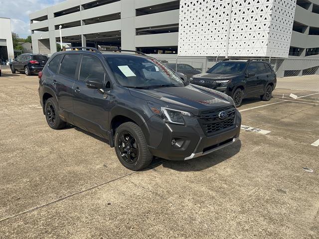 Adventure-ready and equipped for anything, the 2025 Subaru Forester Wilderness AWD in Gray is designed to conquer both city streets and rugged trails. This crossover features an off-road tuned suspension, full-time AWD, and a powerful 2.5L H4 engine paired with an 8-speed shiftable CVT. The Wilderness edition adds black roof rails, underguard bumpers, splash guards, and skid plates for extra protection. Stay connected and comfortable with an 8-inch STARLINK infotainment screen, Android Auto/Apple CarPlay, heated front seats, leatherette upholstery accents, and a panoramic moonroof. Safety is paramount with advanced systems like lane centering, blind spot detection, adaptive cruise control, front and rear automatic emergency braking, pedestrian detection, and rear cross traffic alert. Enjoy extra utility from the rubber/vinyl cargo area mat, rear seat back protector, and multiple USB-C/USB power outlets throughout the cabin. Whether you're heading off-road or running errands, this Forester Wilderness is built for your next journey.