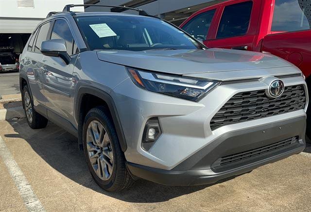 Discover the practically new 2025 Toyota RAV4 XLE Premium in sleek Silver, with only 834 miles on the odometer! This versatile SUV combines sporty style with advanced technology and comfort. Enjoy features like Toyota Audio Multimedia with an 8-inch touchscreen, wireless Apple CarPlay and Android Auto, and a power moonroof for a premium driving experience. Stay safe with Toyota Safety Sense, including adaptive cruise control, lane keeping assist, pedestrian detection, and intersection turn automatic emergency braking. The leatherette-trimmed interior offers an 8-way power driver's seat with lumbar support and dual-zone automatic climate control. Convenient amenities include a power liftgate, push-button start, heated side mirrors, blind spot monitoring, rear cross traffic alert, and multiple USB-C and USB power outlets. With LED headlights, alloy wheels, and a fuel-efficient 2.5L engine paired to an 8-speed automatic, this RAV4 is ready for your next adventure. Don't miss out on this nearly-new SUV-schedule your test drive today!